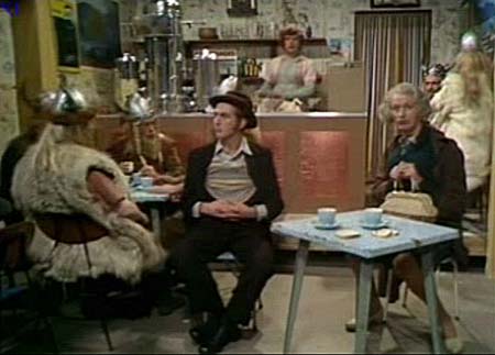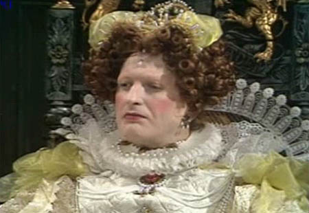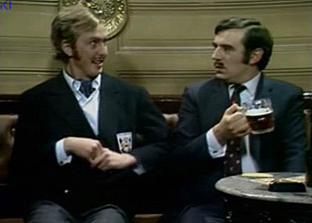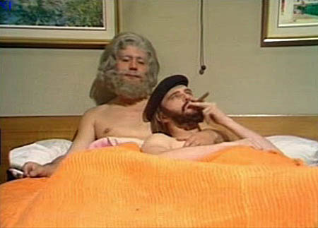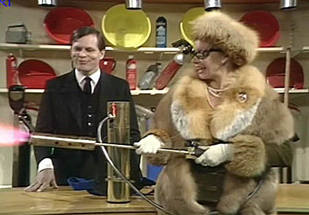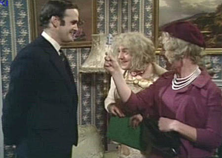 (l-r) Terry Jones as Mrs. S.C.U.M., Graham Chapman as Mr. Neutron