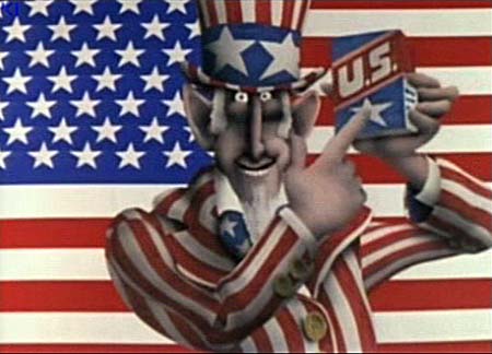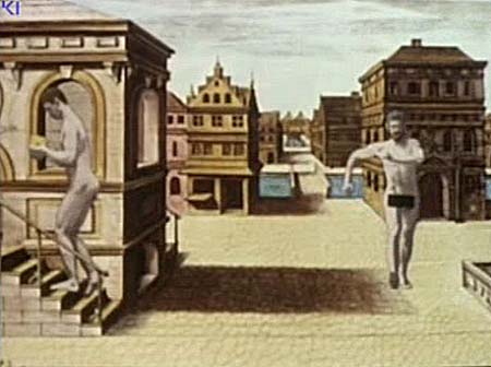 graphic by Terry Gilliam(?), voice-over by Michael Palin
